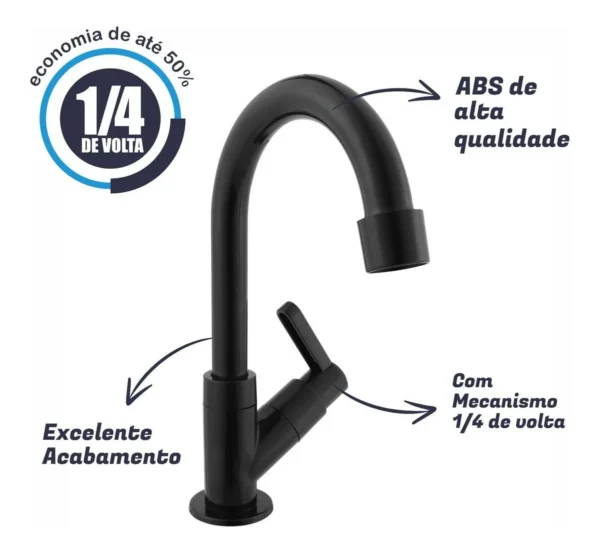 Seja o primeiro a avaliar “Torneira Abs Bica Móvel De Bancada Banheiro Lavatório Preta”